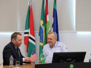 As potencialidades econômicas do Sul do Estado, a internacionalização das empresas locais e a possibilidade de celebração de novas parcerias comerciais pautaram o encontro entre diretores da Associação Empresarial de Criciúma (Acic) e o cônsul-geral dos Estados Unidos em Porto Alegre, Jason Green. O diplomata e sua equipe foram recepcionados pelo presidente Franke Hobold nesta terça-feira, 31, juntamente com diretores da entidade e o vice-presidente regional Sul da Fiesc, Edilson Zanatta.