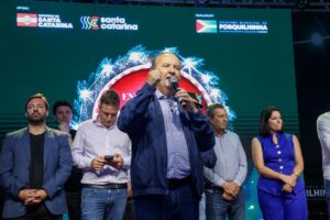 Não tenho dúvida. O Natal é um momento que todos nós nos abrandamos, começamos a refletir, né? O espírito natalino invade o nosso coração. A gente pensa no que fez no ano, agradece, pede saúde, renova as esperanças para o ano que vem, né? Então eu estou aqui para comemorar. Estou aqui hoje, amanhã vou estar em Criciúma para ser parceiro, como a gente sempre foi, dos prefeitos. Os prefeitos nunca foram tão felizes como são no meu governo, né?