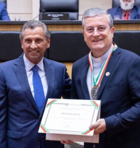 Padre Antônio Vander, Reitor da Basílica Santuário do Sagrado Coração de Jesus , recebeu o título do deputado Rodrigo Minotto