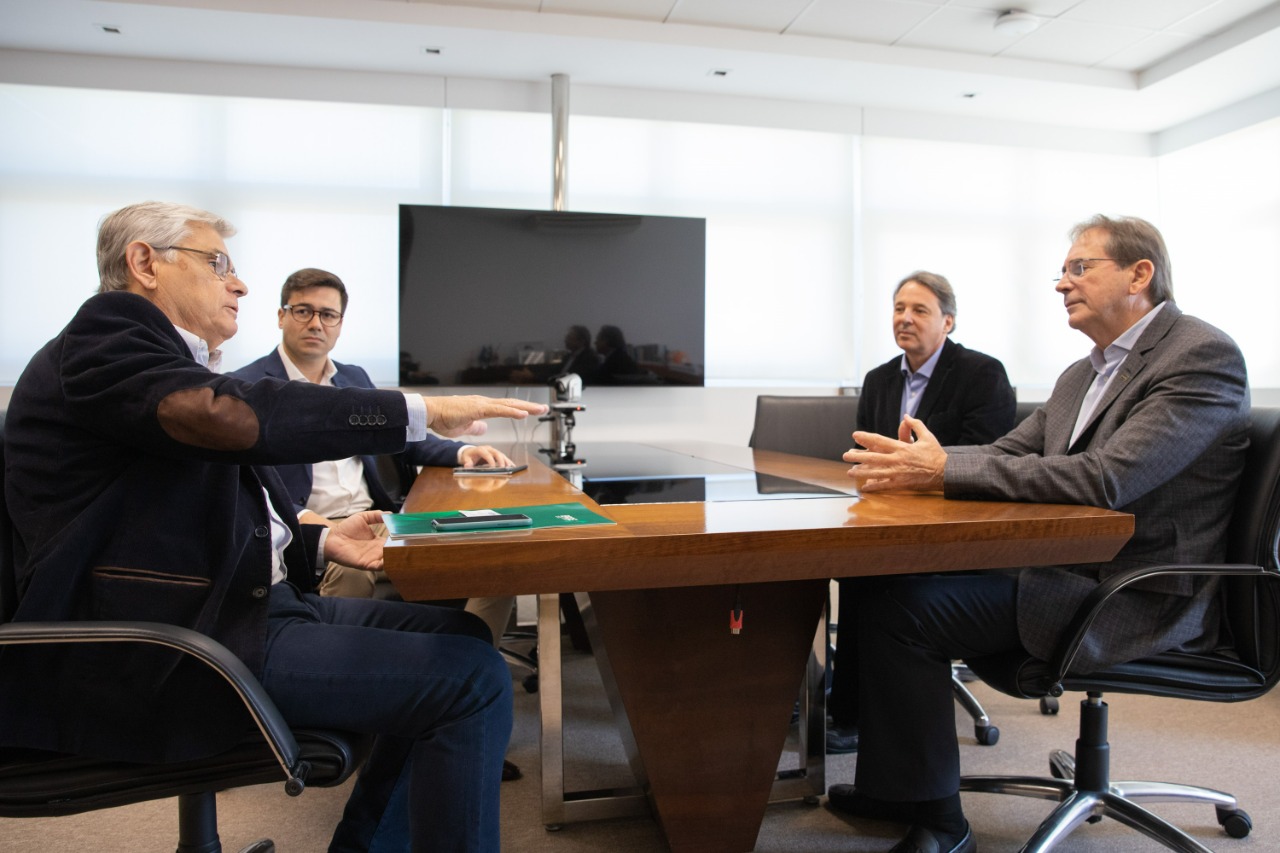 O diretor financeiro do Banco Regional de Desenvolvimento do Extremo Sul (BRDE), Eduardo Pinho Moreira, esteve com o presidente da Fiesc, Mário Cezar Aguiar, nesta quarta-feira, 17, para tratar do Fundo Sul.