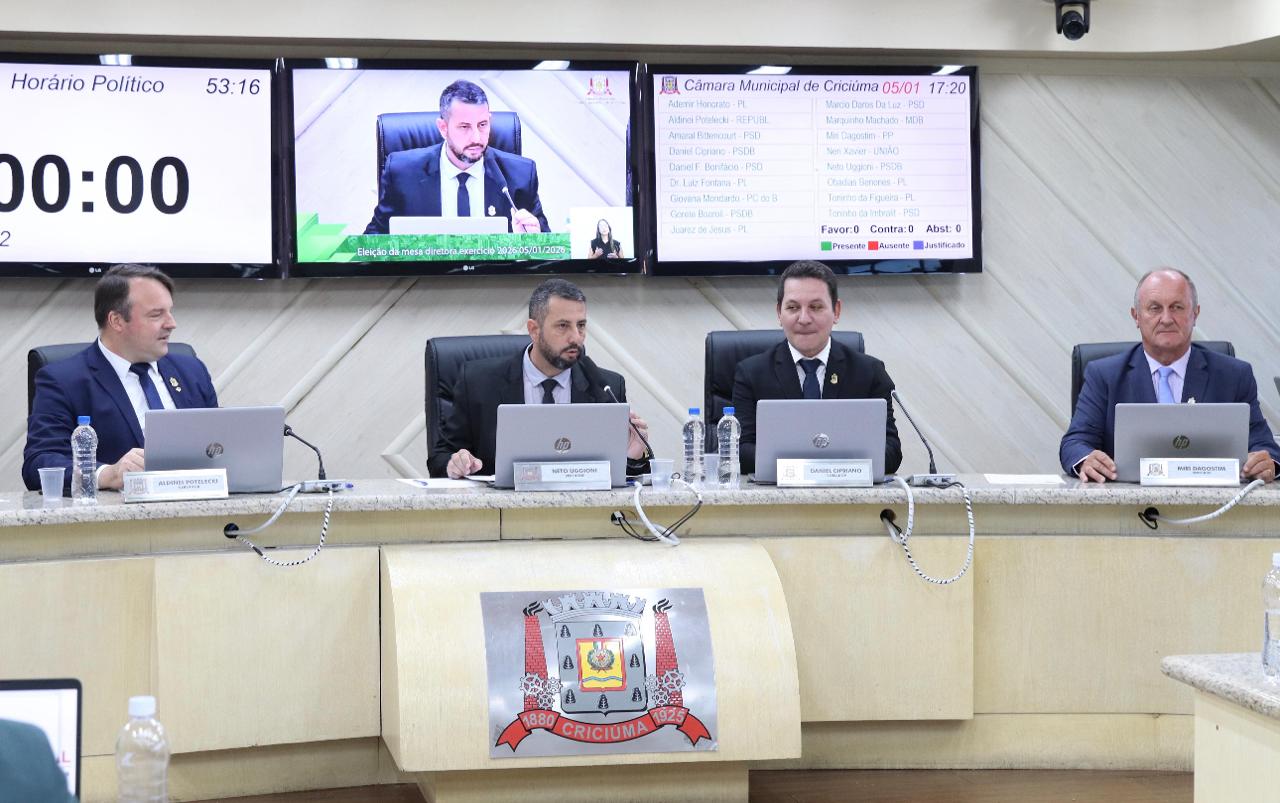 A Câmara de Vereadores de Criciúma realizou, nesta segunda-feira (5), a eleição da nova Mesa Diretora que estará à frente do Legislativo municipal no ano de 2026. Havia duas chapas […]